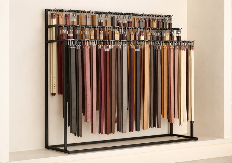 Rehal Display is a trusted Belt Hanging Stand Manufacturer in India, offering premium-quality metal belt display solutions for retail stores, showrooms, malls, and exhibitions. Our belt hanging stands are designed to maximize visibility, improve product organization, and enhance in-store merchandising.